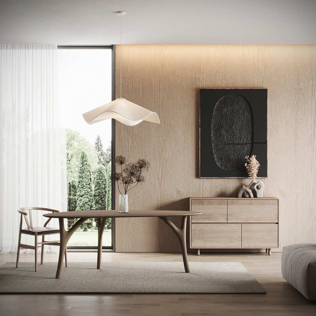 Tisch aus massiver Eiche mit drei Beinen abgerundete und abgeschrägte Kante